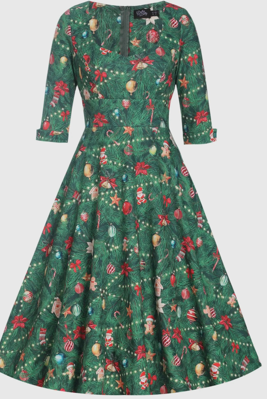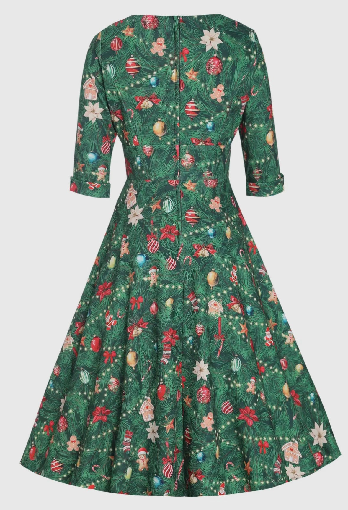 Langärmliges Kleid Scarlette mit Weihnachtsbaummuster in Green