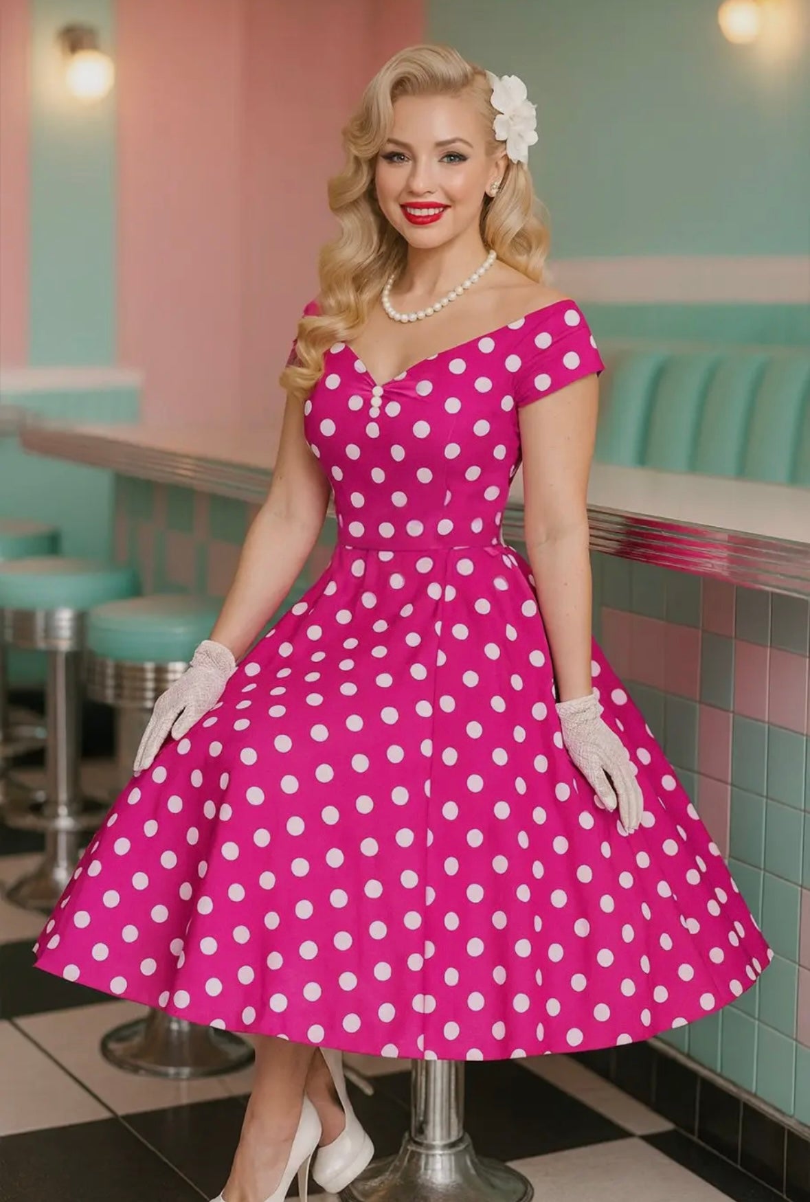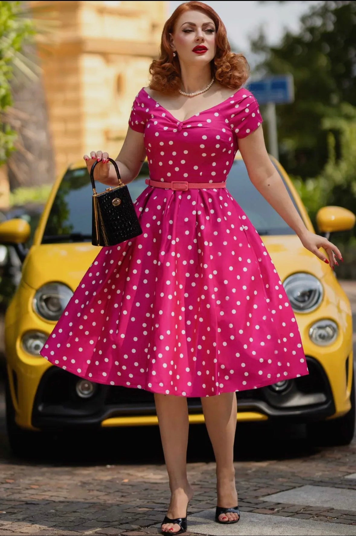 Lily Hot Pink Polka Dot Off-Shoulder-Kleid
